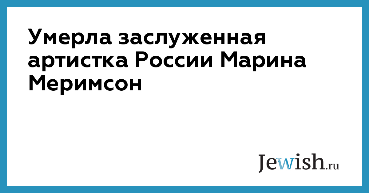 В Челябинске в возрасте 81 года скончалась заслуженная артистка России Марина Меримсон. Об этом сообщает «Газета.ru» со ссылкой на продюсера Владимира Шмырова. В Челябинском театре драмы, в труппе которого актриса состояла с 1980-х годов, отметили, что та более века провела на сцене и исполнила более 100 ролей.