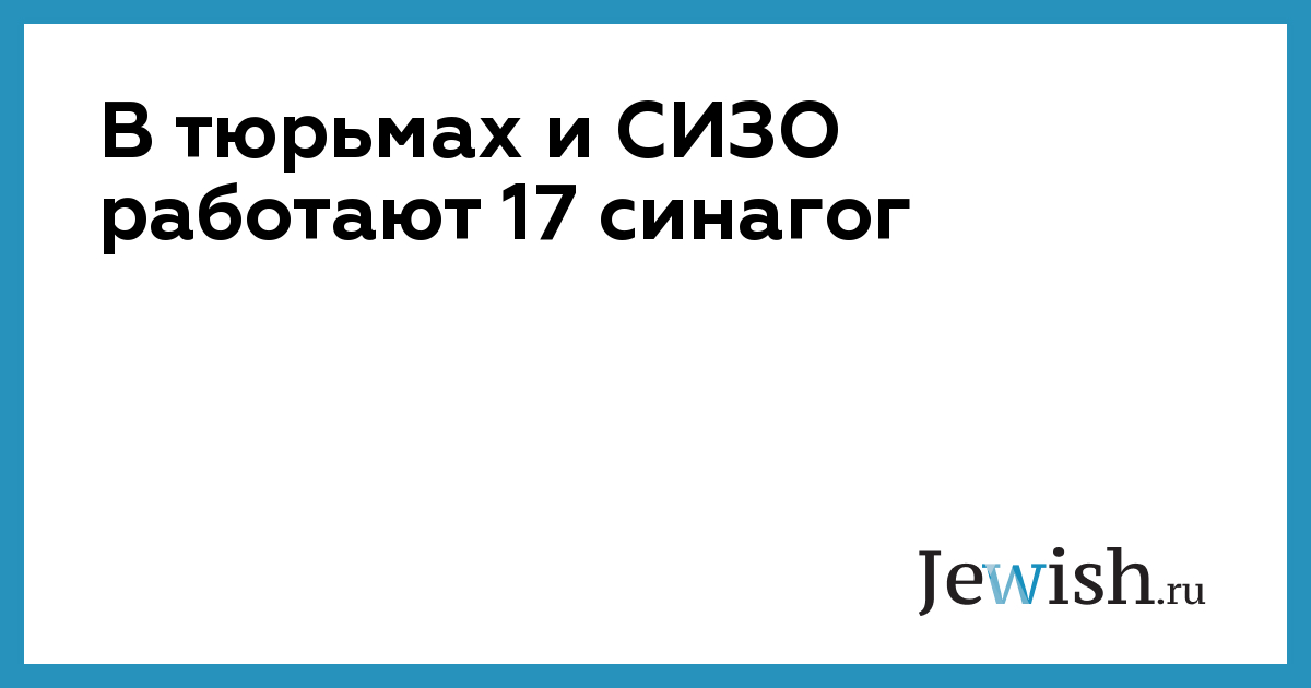 Руководитель департамента Федерации еврейских общин России по взаимодействию с вооруженными силами и правоохранительными учреждениями Аарон Гуревич сообщил в Facebook о том, что в настоящее время в учреждениях уголовно-исполнительной системы России работают 17 синагог.