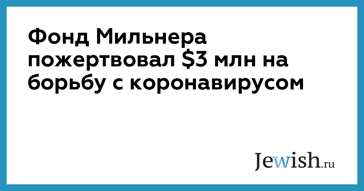Фонд Мильнера пожертвовал $3 млн на борьбу с коронавирусом