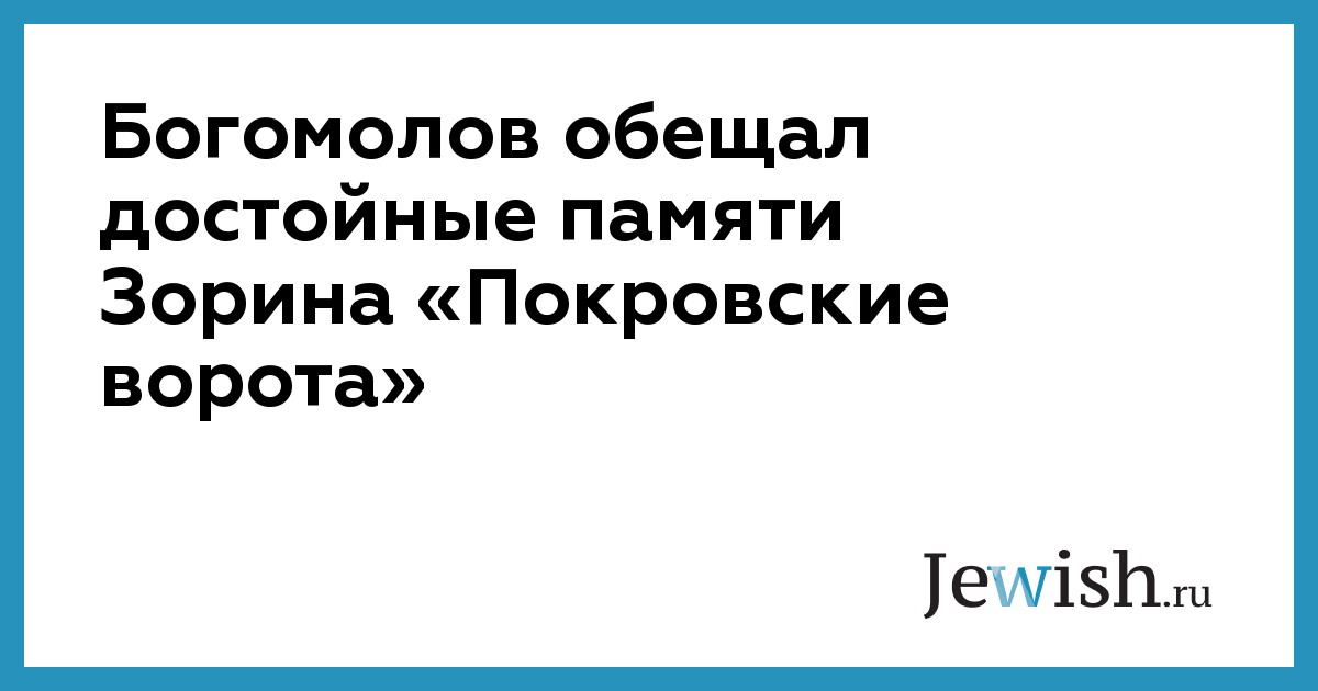 Богомолов обещал достойные памяти Зорина «Покровские ворота»