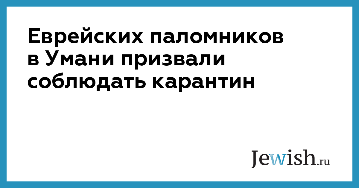 Израильские дипломаты, украинские раввины и власти Умани опубликовали совместное обращение к еврейским паломникам. Хасидов, которые проводят Песах в Умани, просят соблюдать правила карантина и, таким образом, исполнить заповедь о заботе о собственном благополучии. В частности, паломников призвали не покидать домов, не собираться группами больше 2 человек, носить маски и обращаться к медикам в случае необходимости.