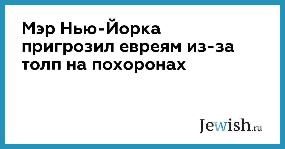 Мэр Нью-Йорка пригрозил евреям из-за толп на похоронах
