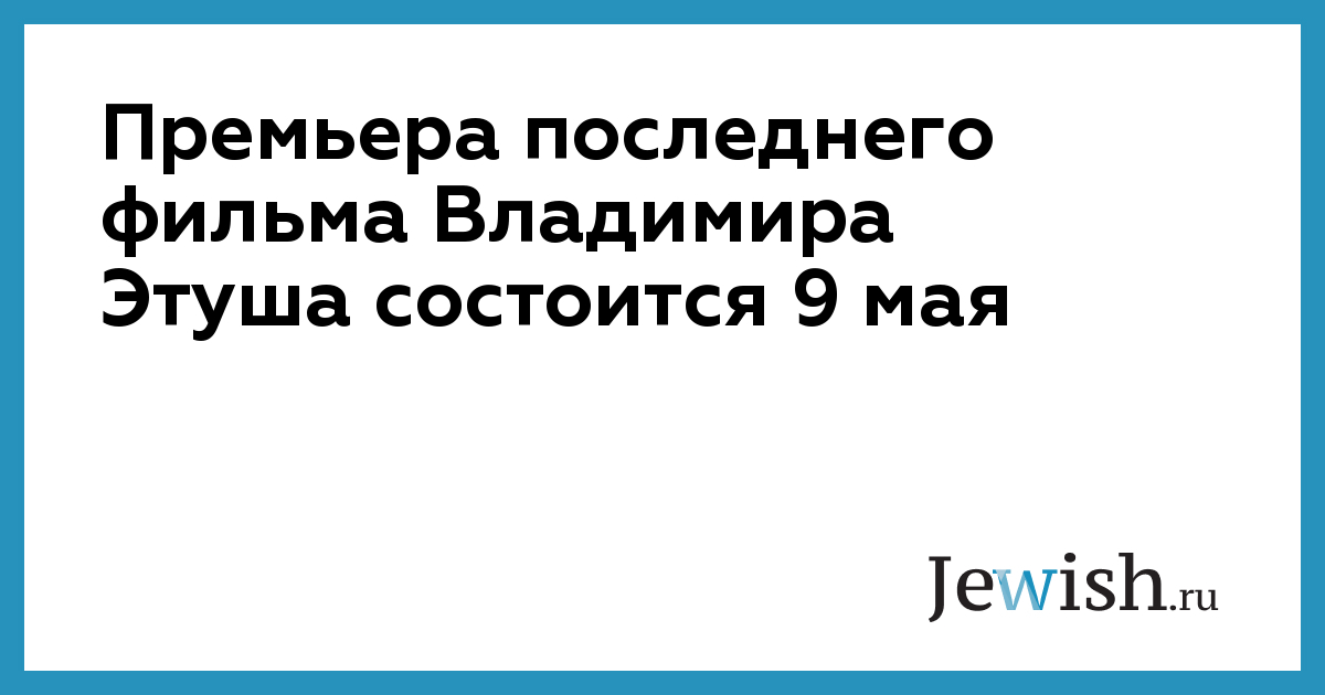 Премьера последнего фильма Владимира Этуша состоится 9 мая
