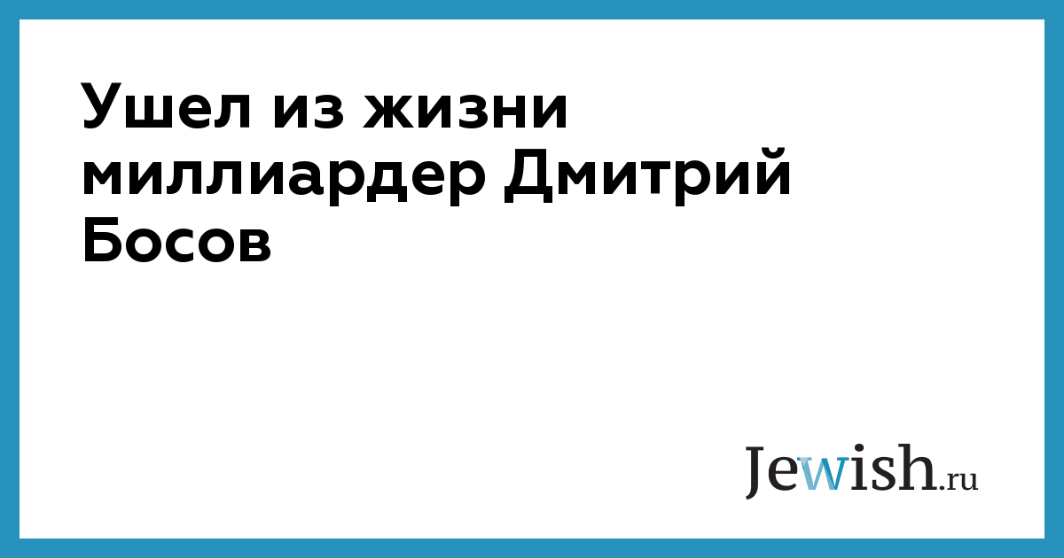 Ушел из жизни миллиардер Дмитрий Босов
