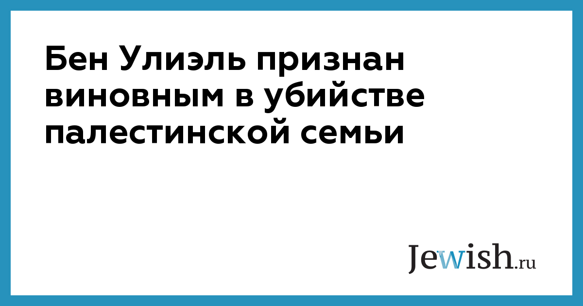 Бен Улиэль признан виновным в убийстве палестинской семьи