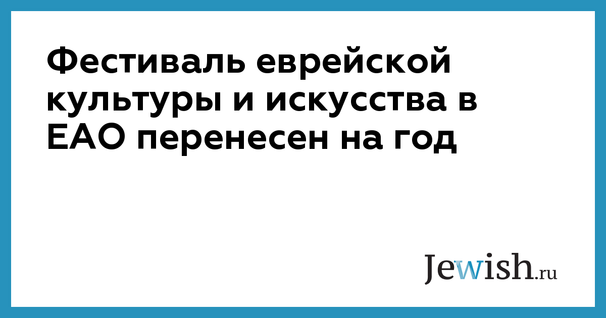 Традиционный Международный фестиваль еврейской культуры и искусства в ЕАО перенесли на 2021 год, сообщает РИА «Биробиджан» со ссылкой на управление по внутренней политике ЕАО.
