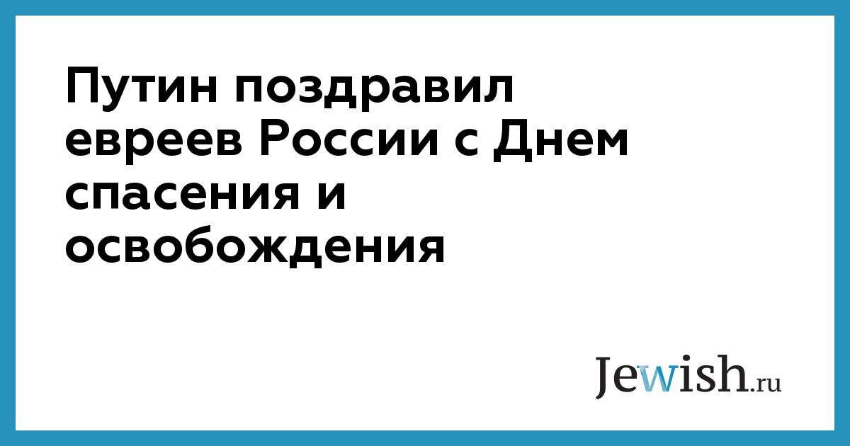 Путин поздравил евреев России с Днем спасения и освобождения