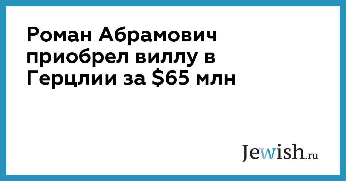 Российский бизнесмен Роман Абрамович купил в Израиле виллу за $65 млн, расположенную в Герцлии. Об этом сообщает Globes со ссылкой на источник.
