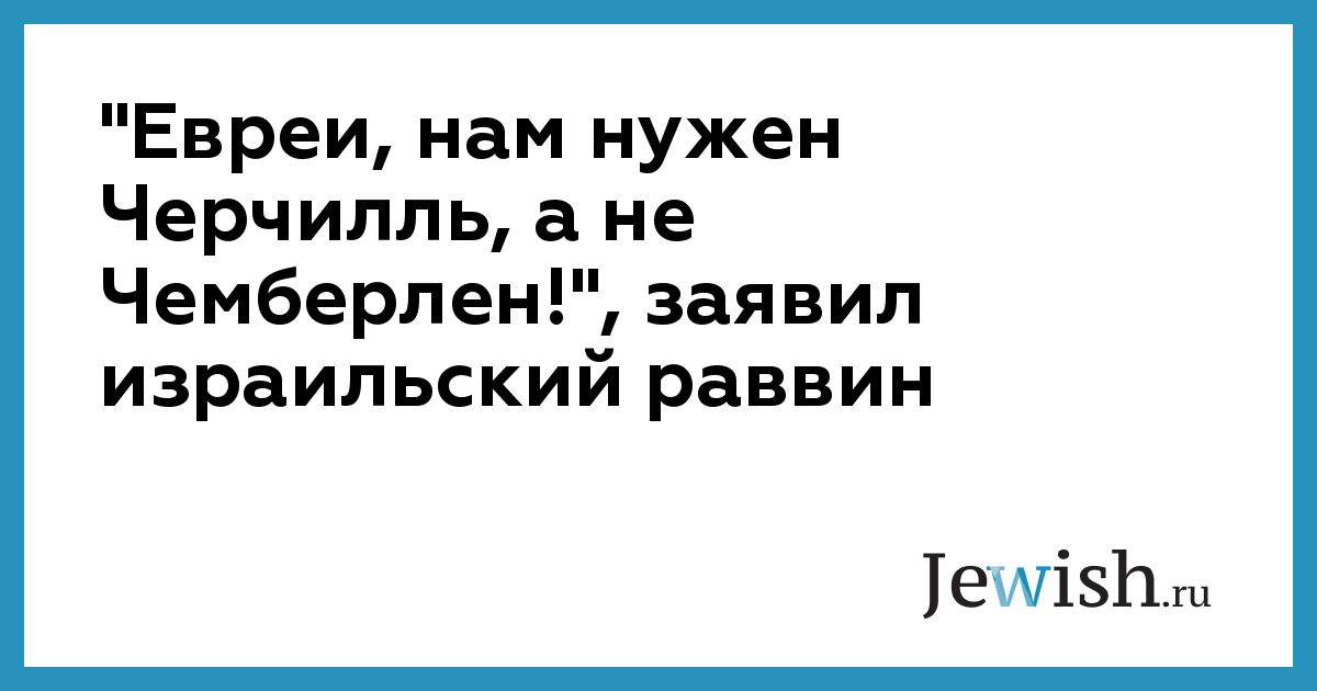 "Евреи, нам нужен Черчилль, а не Чемберлен!", заявил израильский раввин