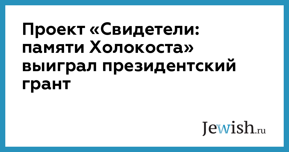 Проект «Свидетели: памяти Холокоста» выиграл президентский грант