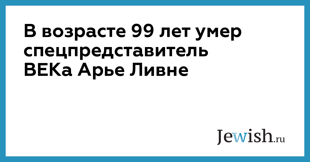 В возрасте 99 лет умер спецпредставитель ВЕКа Арье Ливне