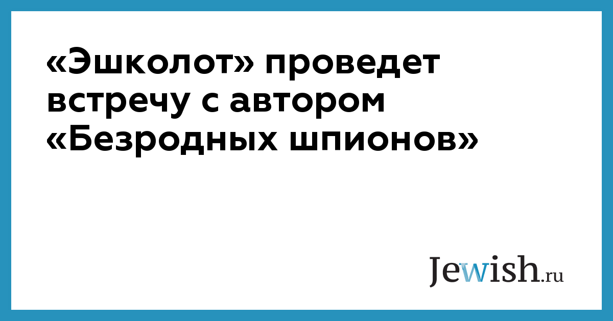 «Эшколот» проведет встречу с автором «Безродных шпионов»
