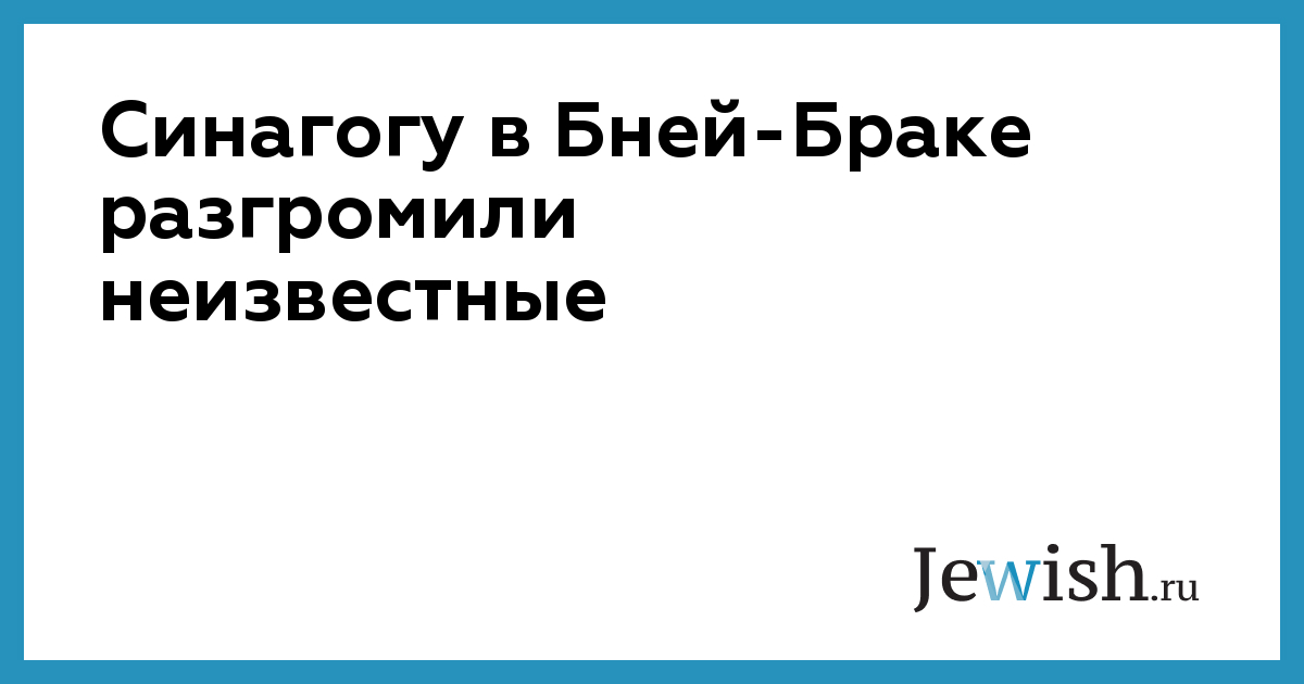 Вечером 27 октября неизвестные злоумышленники проникли в одну из синагог Бней-Брака. Они предпринимали попытки сжечь свитки Торы и громили все вокруг, чем нанесли ущерб помещению, пишет Newsru.co.il.