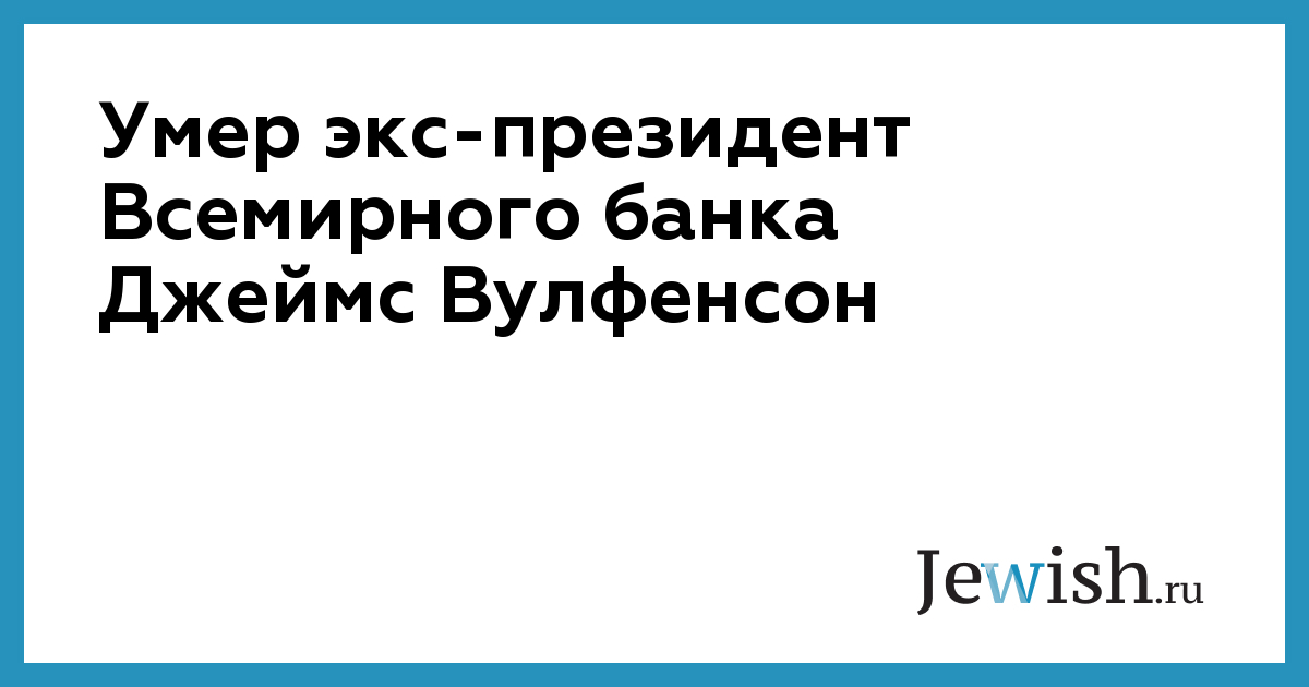 В Нью-Йорке на 87-м году жизни скончался Джеймс Вулфенсон, в 1995–2005 годах возглавлявший Всемирный банк. Об этом со ссылкой на The Washington Post сообщает «Коммерсантъ». Причиной смерти стало осложнение после пневмонии.