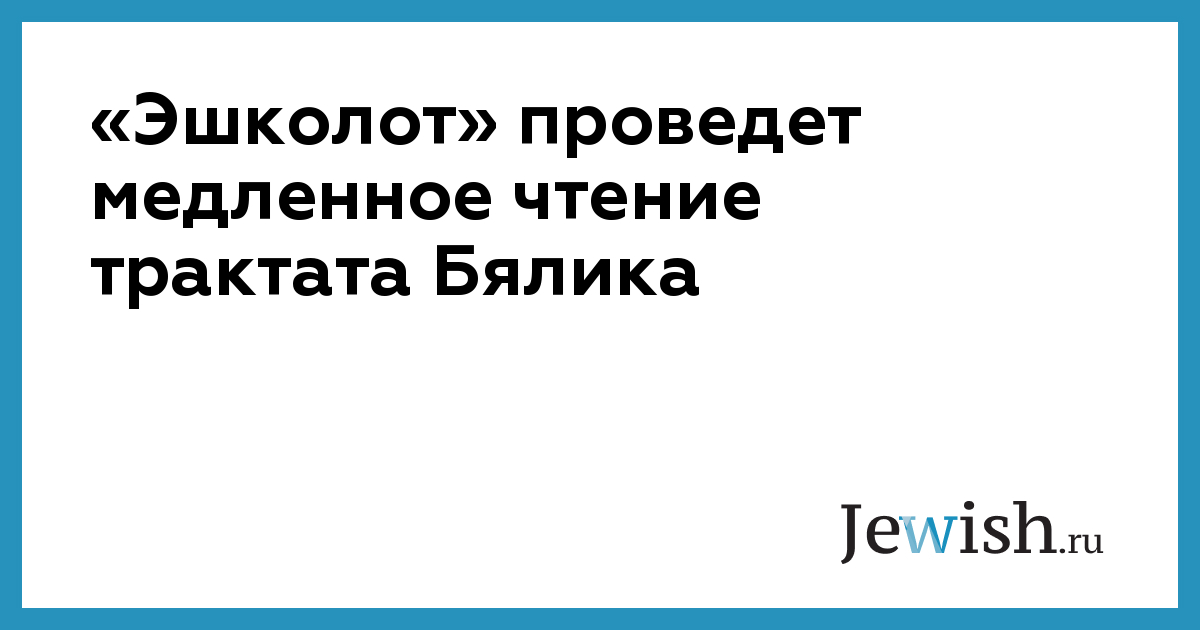 «Эшколот» проведет медленное чтение трактата Бялика