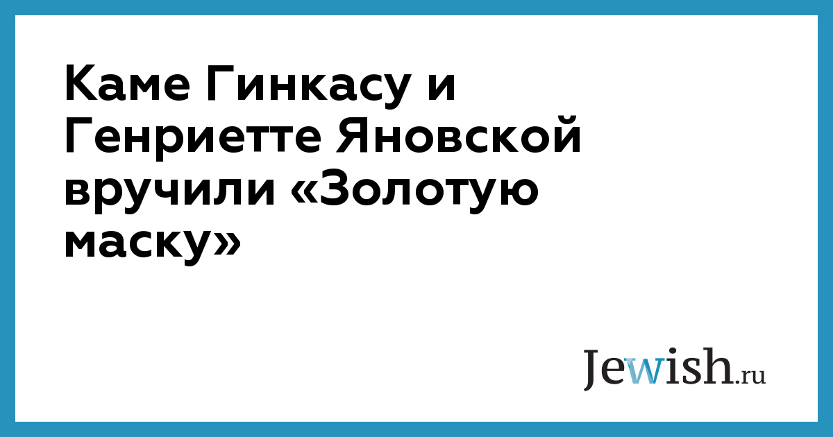 Режиссеры Кама Гинкас и Генриетта Яновская, народные артисты РФ, стали лауреатами специальной премии «Золотая маска» «За выдающийся вклад в развитие театрального искусства». В список лауреатов премии этого года также вошли режиссеры Ефим Звеняцкий и Александр Славутский.