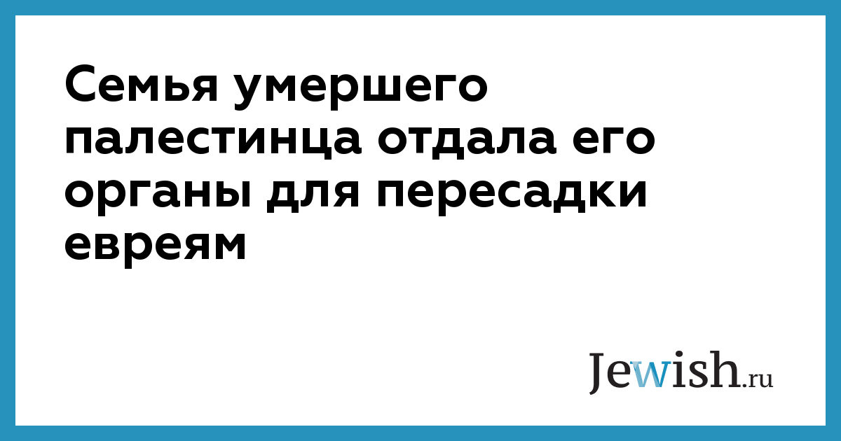 Семья умершего палестинца отдала его органы для пересадки евреям