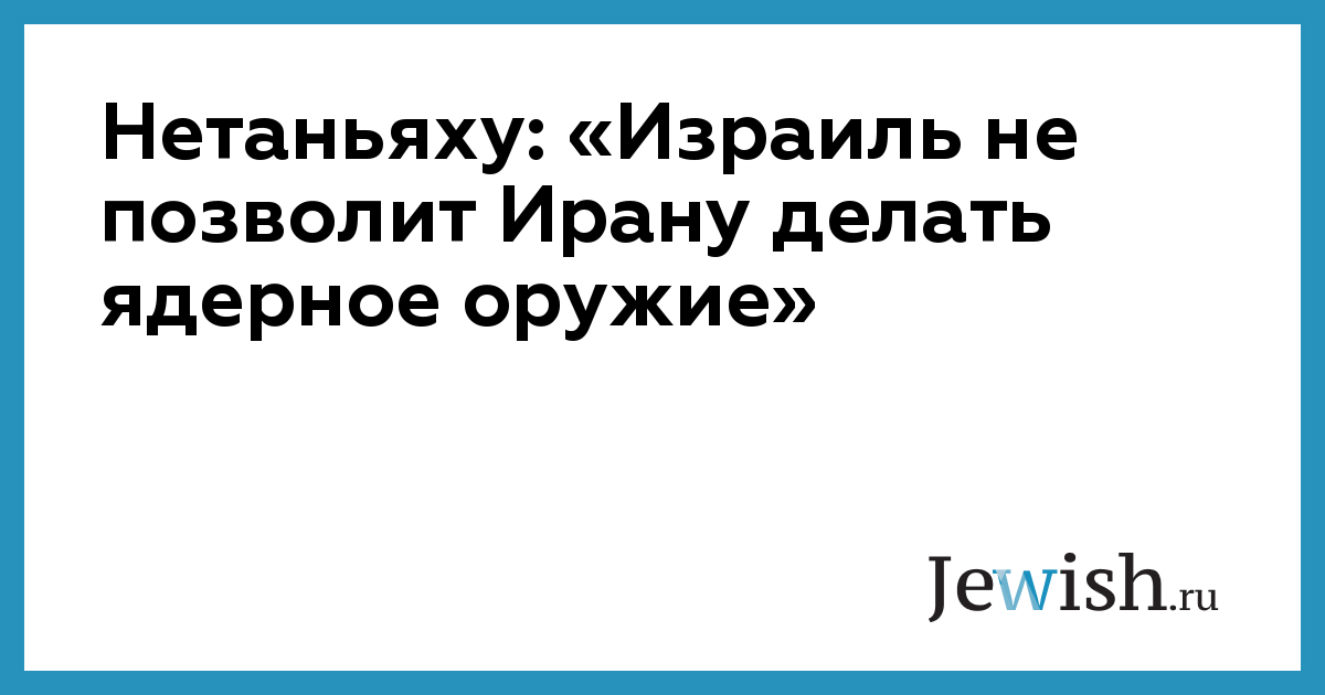 Нетаньяху: «Израиль не позволит Ирану делать ядерное оружие»