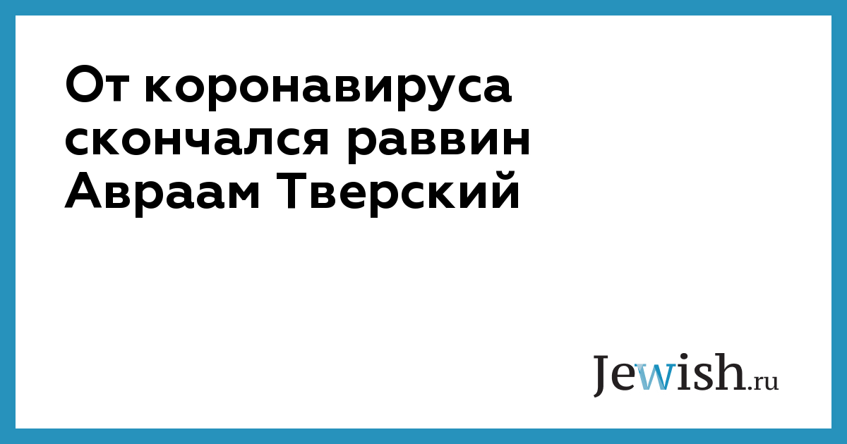 От коронавируса скончался раввин Авраам Тверский
