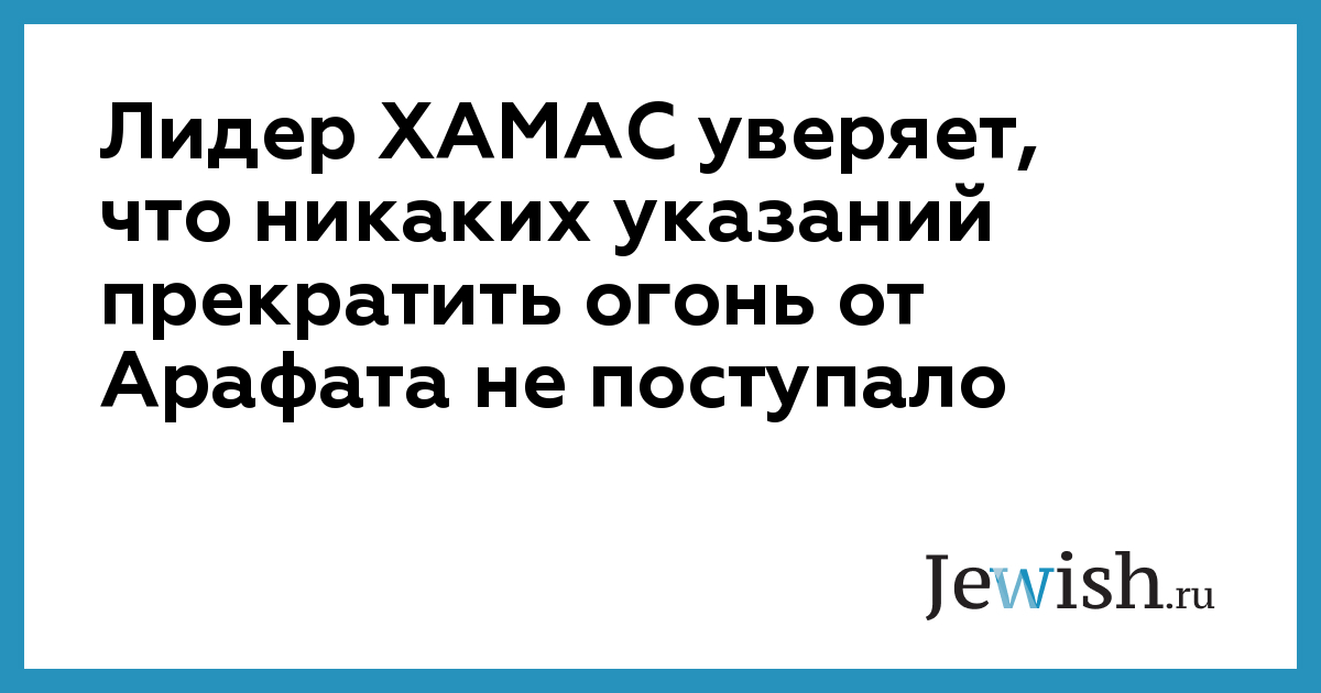 Лидер ХАМАС уверяет, что никаких указаний прекратить огонь от Арафата не поступало