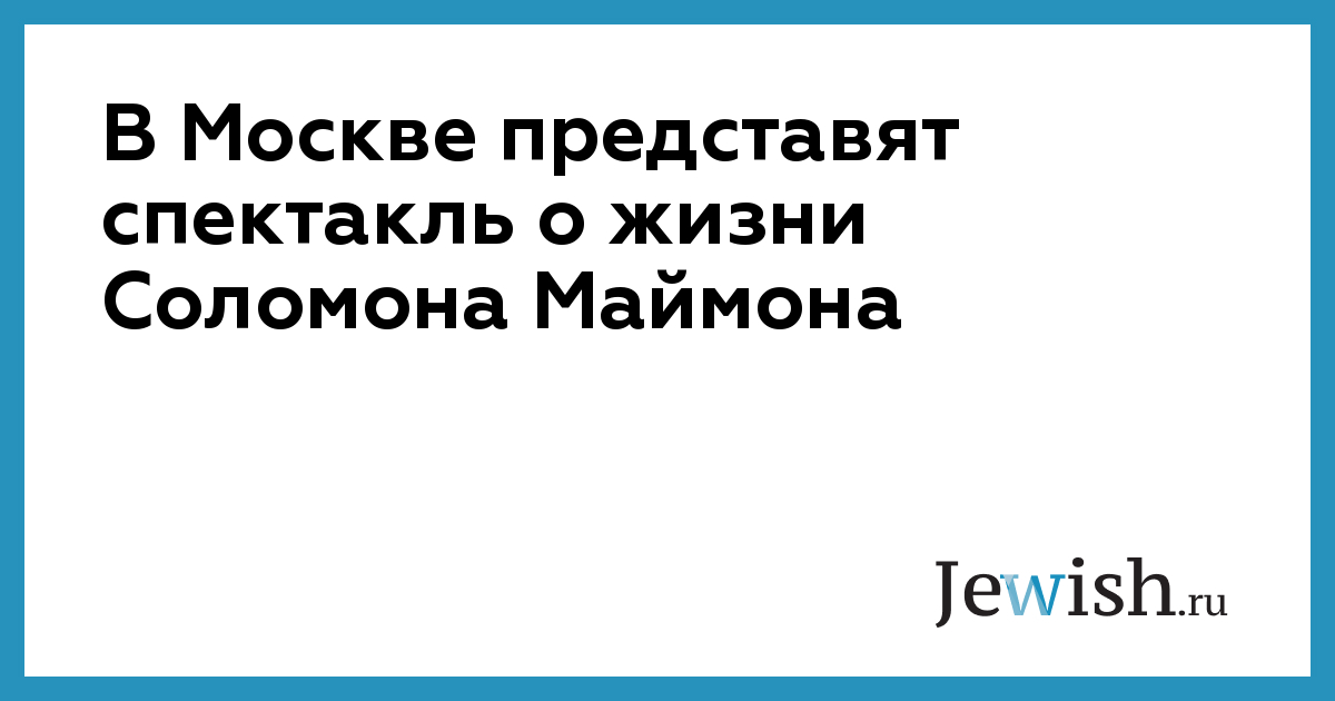 17 января, в среду, в электротеатре «Станиславский» в Москве состоится премьера мультимедийного спектакля «Жизнь и необыкновенные приключения Соломона Маймона». На сайте театра указано, что в основе постановки лежит текст автобиографии Маймона, впервые изданной в 1791 году.