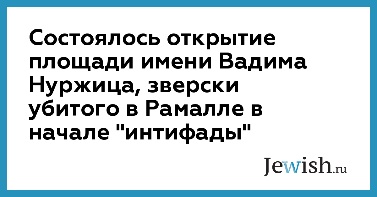 Состоялось открытие площади имени Вадима Нуржица, зверски убитого в Рамалле в начале "интифады"
