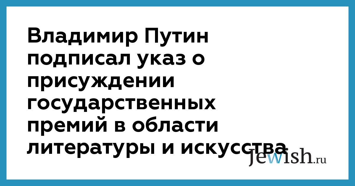 Владимир Путин подписал указ о присуждении государственных премий в области литературы и искусства