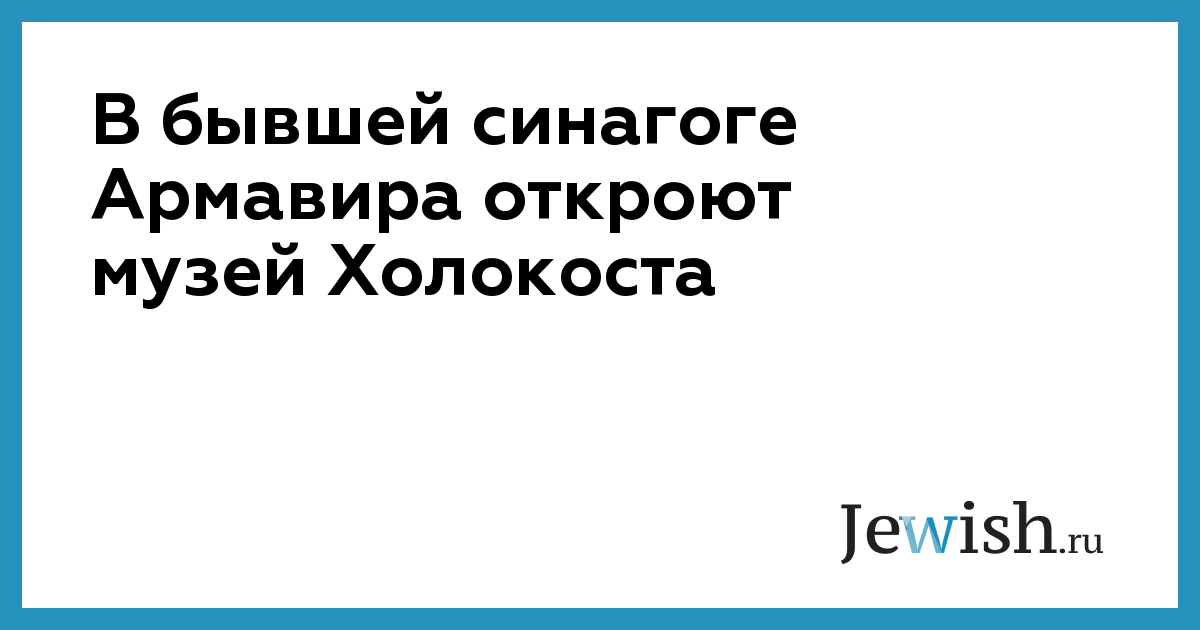 В бывшей синагоге города Армавира Краснодарского края 1 мая откроется музей Холокоста – первый в крае. Об этом сообщил телеканал «Кубань 24» со ссылкой на главу местной еврейской общины Владимира Армера.