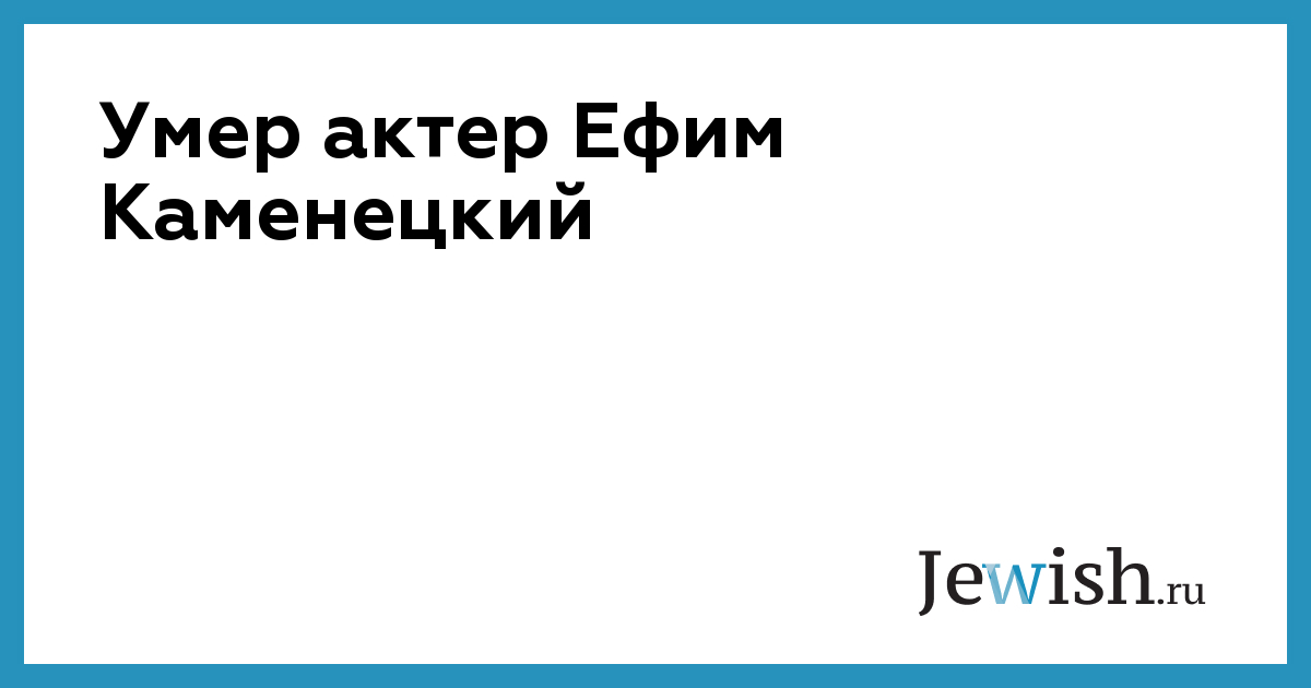 «Третьего мая скончался актер Санкт-Петербургского театра имени Комиссаржевской Ефим Александрович Каменецкий, игравший на сцене этого театра последние 34 года», – говорится в сообщении пресс-службы.