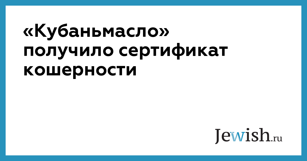 Департамент кашрута при Главном раввинате России выдал сертификат кошерности ООО «Кубаномасло–ЕМЗ» – российскому производителю рапсового и кукурузного масла. В результате проверки производства, проведенной специалистами департамента кашрута, масла под маркой «Кубаньмасло» были признаны кошерными.