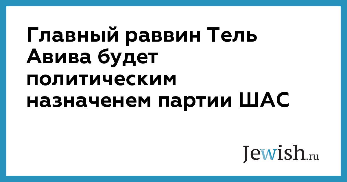 Главный раввин Тель Авива будет политическим назначенем партии ШАС