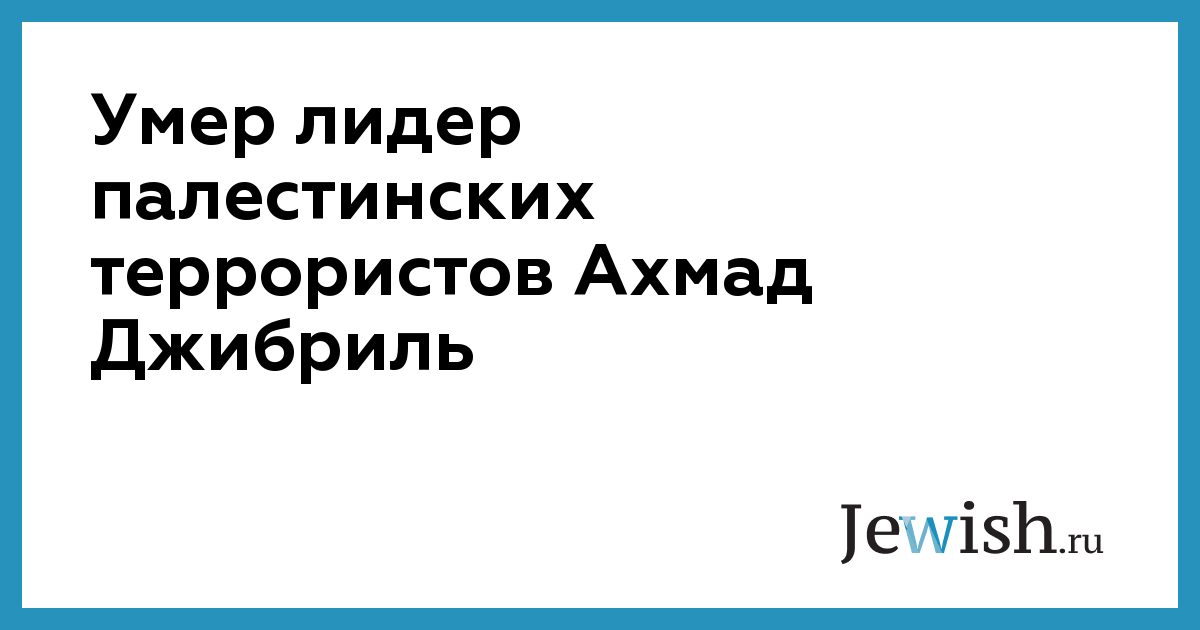 В Дамаске в возрасте 83 лет умер основатель «Народного фронта освобождения Палестины» Ахмад Джибриль, организатор и идеолог десятков терактов против израильтян.
