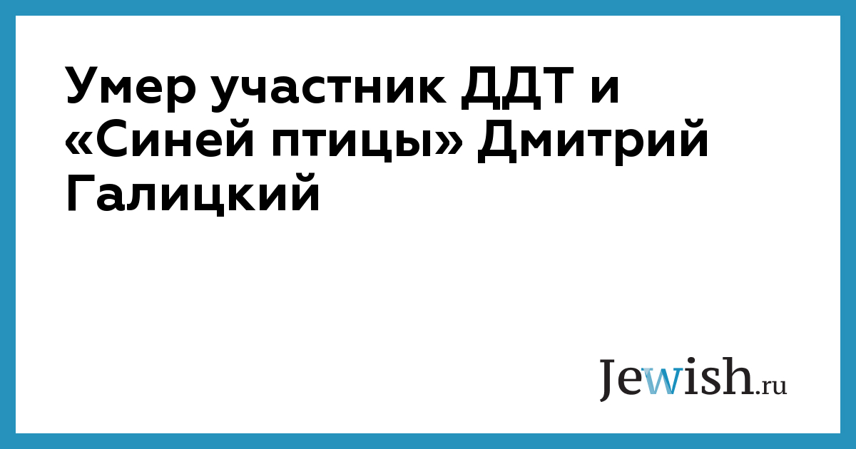 В Калуге во время операции скончался бывший клавишник ансамбля «Синяя птица», ДДТ и других музыкальных коллективов Дмитрий Галицкий. Музыканту было 65 лет. Его смерть подтвердили директор московского театра песни «Синяя птица» Александр Зуборев и представитель ДДТ.