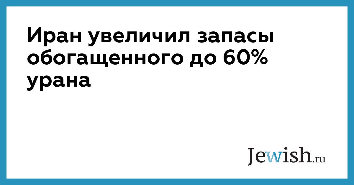 Иран увеличил запасы обогащенного до 60% урана до 17,7 килограмма, со ссылкой на сообщение Международного агентства по атомной энергии (МАГАТЭ) сообщает РИА «Новости». В сентябре запасы урана этого уровня обогащения составляли 10 килограммов.