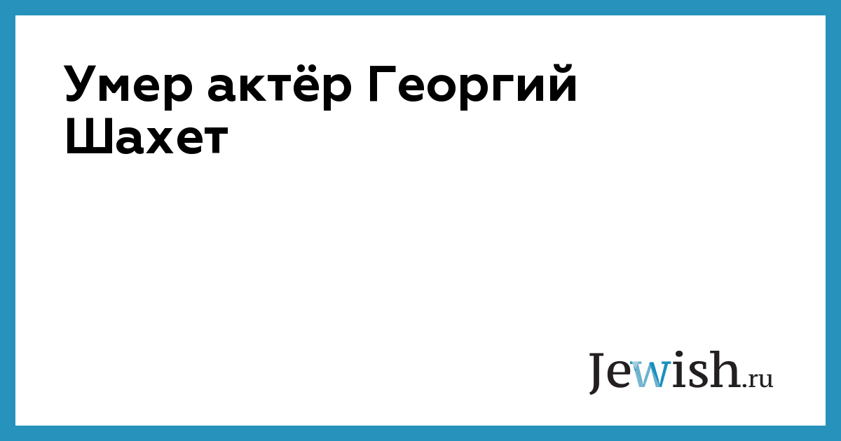 Умер актёр Георгий Шахет