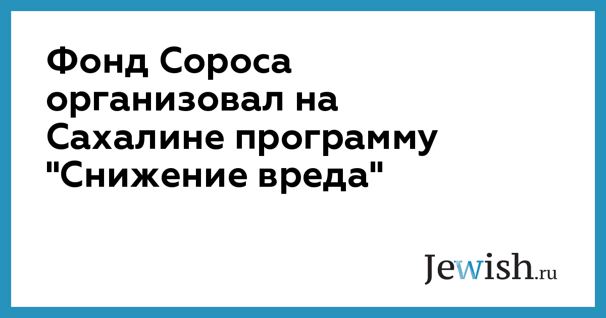 Фонд Сороса организовал на Сахалине программу "Снижение вреда"
