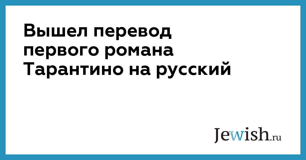 Вышел перевод первого романа Тарантино на русский