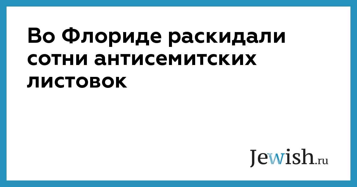Ночью в воскресенье, 23 января, неизвестные оставили антисемитские листовки возле сотен домов в Майами-Бич и Серфсайде, Флорида, пишет Washington Post. Полицейское управление Майами-Бич сообщило, что был усилен патруль в некоторых районах и возле религиозных учреждений. Расследование уже ведется.