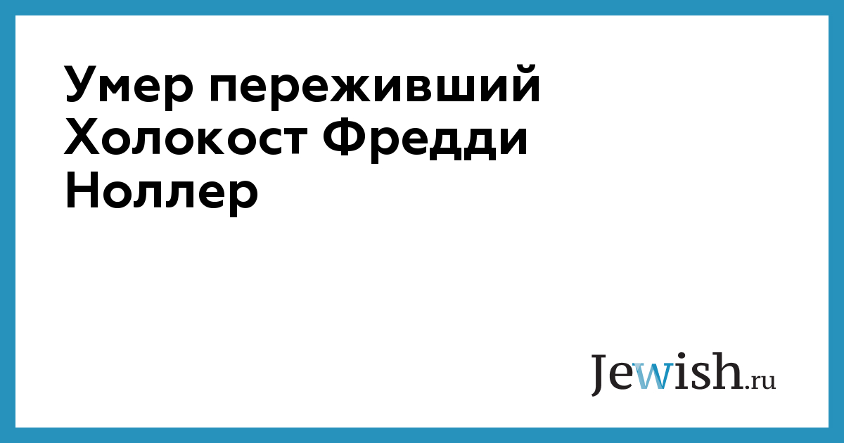 Умер переживший Холокост Фредди Ноллер
