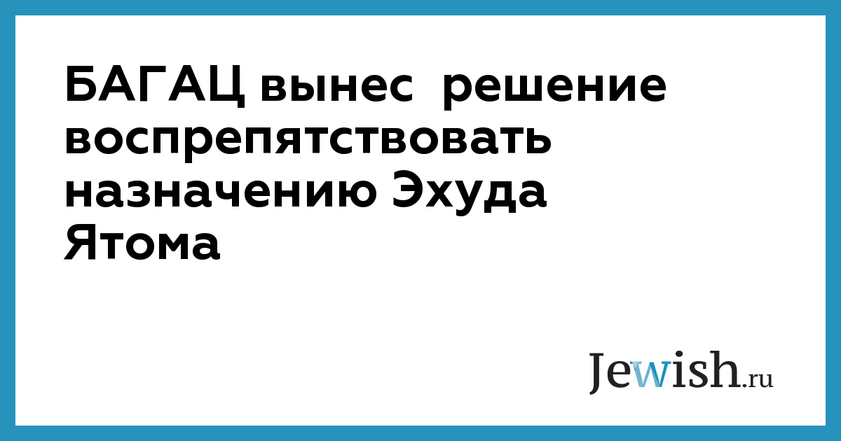 БАГАЦ вынес решение воспрепятствовать назначению Эхуда Ятома