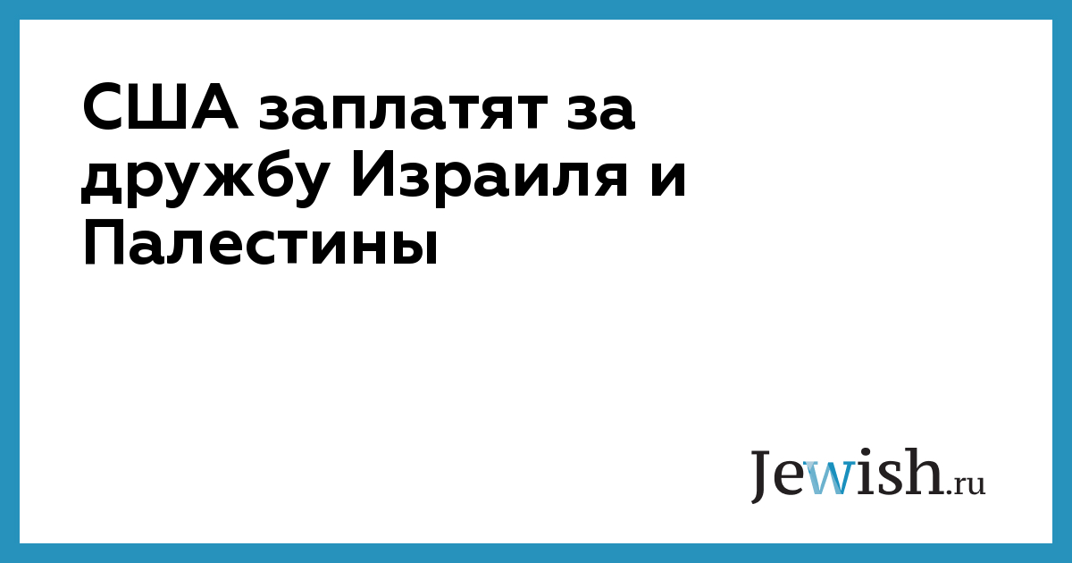 США заплатят за дружбу Израиля и Палестины