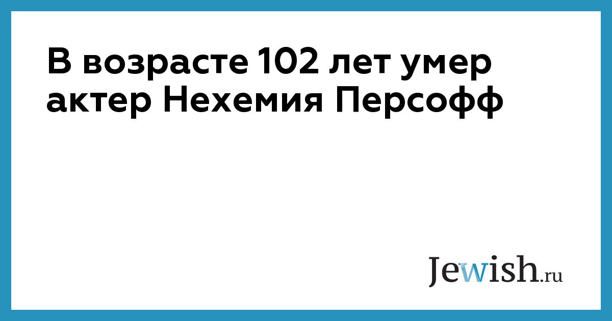 В Калифорнии в возрасте 102 лет скончался Нехемия Персофф – голливудский актер, сыгравший в «Джазе только девушки», «Йентл», сериалах «Коломбо», «Гавайи 5-О», «Стар Трек: следующее поколение», «Звездный крейсер “Галактика”» и многих других. Персофф особенно запомнился ролями гангстеров и раввинов, отмечает JTA: среди его самых известных ролей гангстер Маленький Бонапарт в «Джазе только девушки» и раввин Мендель, отец героини Стрейзанд, в фильме «Йентл».