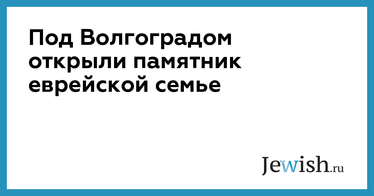 Памятник погибшей в годы Холокоста еврейской семье открыли в хуторе Веселый под Волгоградом, пишет Lacmus. Мемориал был установлен в память об убитых нацистами в 1942 году Фане Фрайгер и двоих ее маленьких детях – пятилетнем Леоне и годовалой Берте. Памятный знак открыли в рамках проекта «Вернуть достоинство».