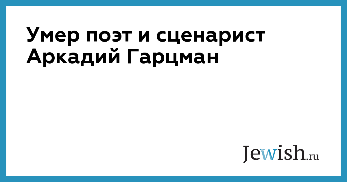 В четверг, 23 июня, в Киеве умер поэт, сценарист и актер Аркадий Гарцман, написавший тексты песен к мультфильму «Остров сокровищ», сообщает ТАСС. Ему было 75 лет. Причина смерти не уточняется.