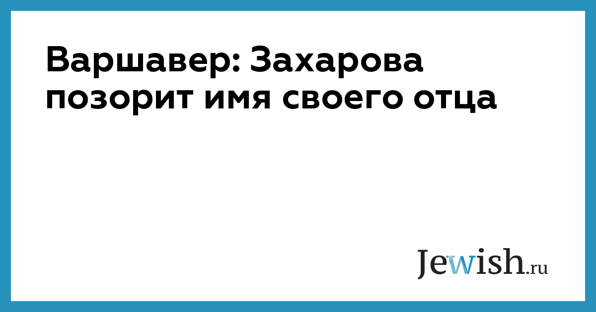 Директор театра «Ленком» Марк Варшавер заявил, что актриса Александра Захарова «портит имя» своего отца Марка Захарова. Об этом он рассказал в интервью изданию Teleprogramma.