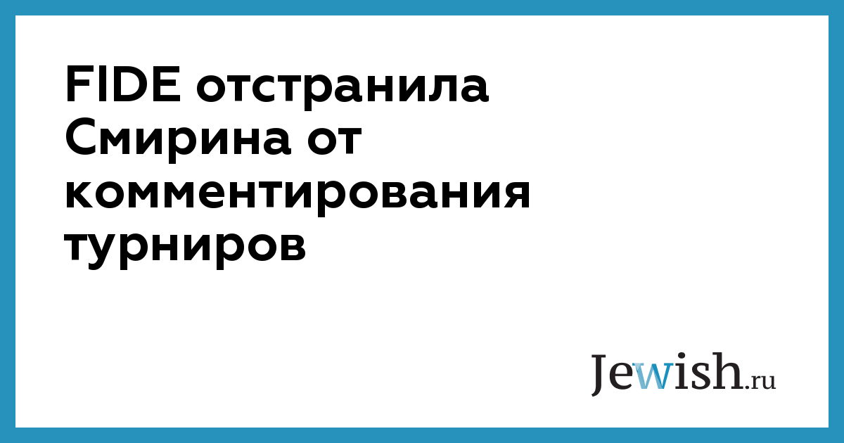 Израильский гроссмейстер Илья Смирин отстранен от комментирования турниров Международной шахматной федерации (FIDE) якобы за «сексистские высказывания», сообщается на сайте организации.