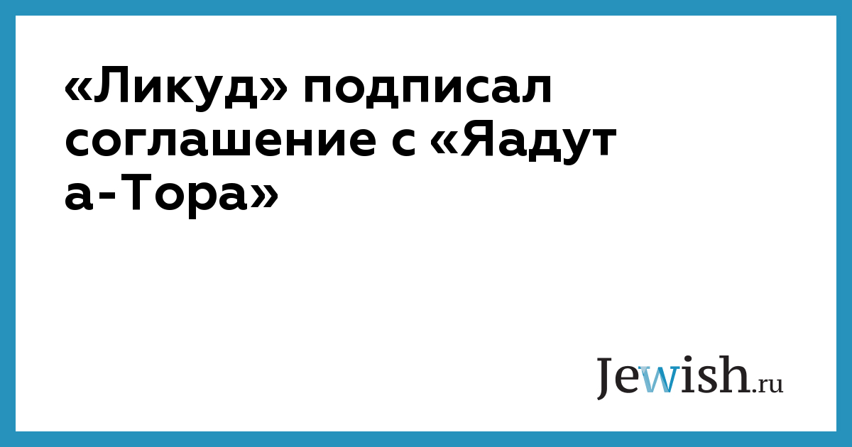 «Ликуд» подписал соглашение с «Яадут а-Тора»