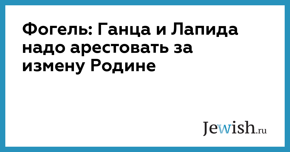 Депутат партии «Оцма Иегудит», глава комиссии Кнессета по внутренней безопасности Цвика Фогель заявил, что экс-премьера Яира Лапида, бывшего министра обороны Бени Ганца и экс-депутатов Яира Голана и Моше Яалона нужно арестовать – и не за что-нибудь, а за измену Родине.