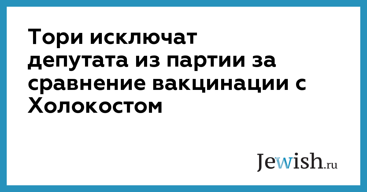 Консервативная партия Великобритании приостановила членство депутата парламента Эндрю Бриджена после того, как он сравнил вакцинацию от COVID-19 с Холокостом, пишет The Times of Israel. Парламентский организатор консерваторов Саймон Харт, должность которого называется еще «главный кнут правительства», так как именно он отвечает за дисциплину в партийных рядах, заявил, что Бриджен «перешел черту, причинив серьезное оскорбление».