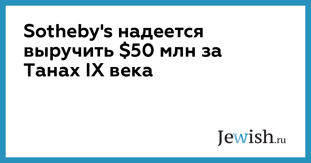 Sotheby's надеется выручить $50 млн за Танах IX века